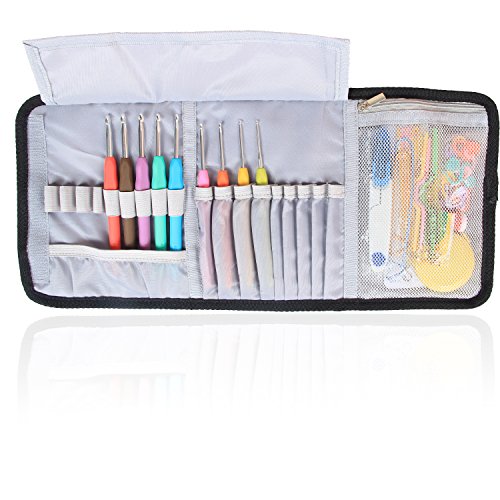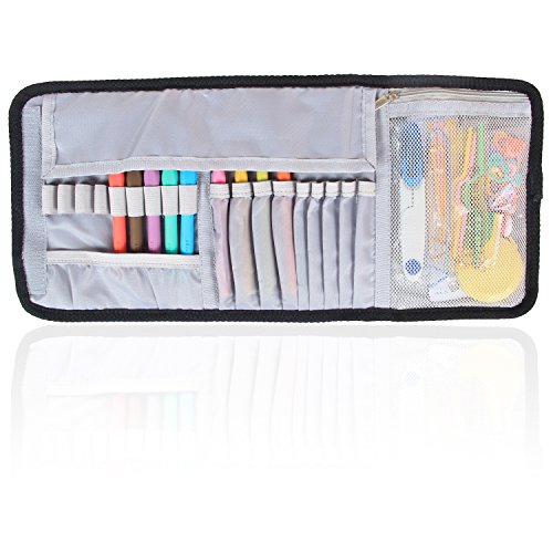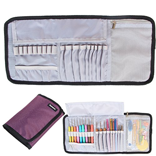 WELL-CONSTRUCTED: 9 beautifully-stitched elastic bands are design to stay Ergonomic Crochet hooks,rubber handles Crochet hooks and more, 9 slots for Aluminum Crochet Hooks and bamboo crochets. The zipper mesh pockets for small notions.