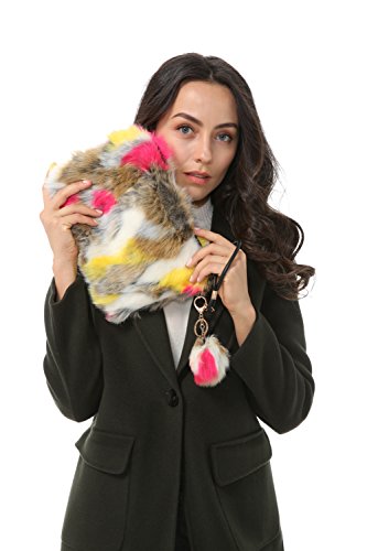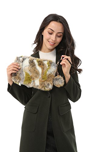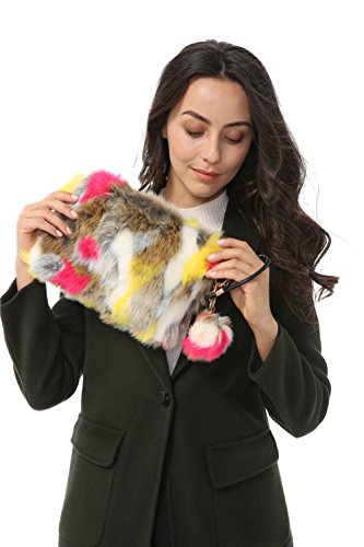 Dikoaina Fashion Women Faux Fur Handbag Evening Clutch Phone and Wallet Purse Lady Bag