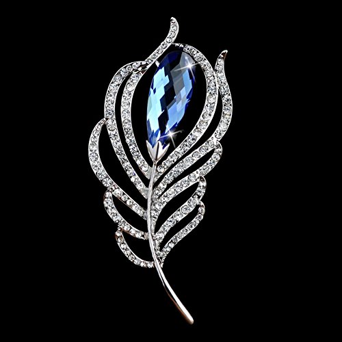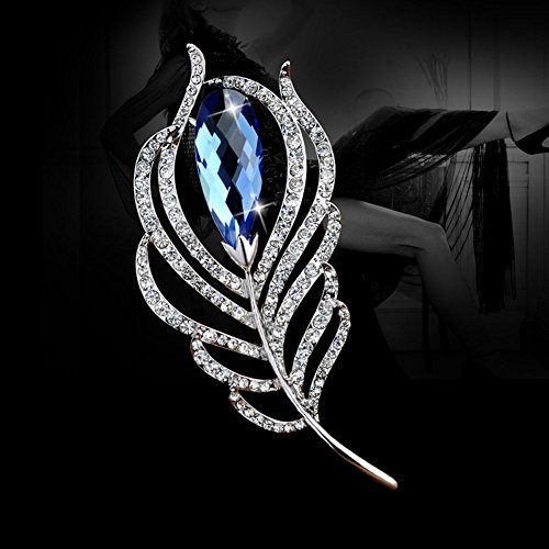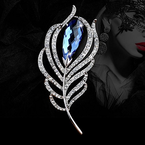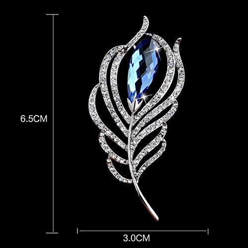 Fashion Crystal Feather Brooch Pin Scarves Buckle Shawl Clasp Luxury Flower Brooch Accessories for Women Girl Xmas Gift (Blue Crystal)