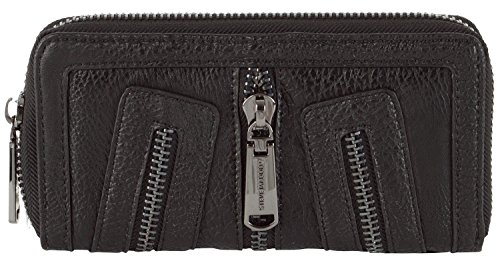 Carry your cash and cards in this classic Steve Madden Zipper Continental Zip Around Wallet, Exterior Features; embellished zipper design and logo plaque, Zip around closure, Interior features; 4 credit card slots, 2 full length slip currency pockets, a Center zippered coin pocket and ID Slot. This wallet offers storage for your currency and exceptional organization in sleek styling.