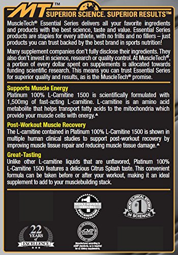 ReleaseDate : 2017-09-08 Studio : Iovate Health Sciences Incorporated Publisher : Iovate Health Sciences Incorporated Binding : Health and Beauty Product Description The L-carnitine contained in Platinum 100% L-Carnitine 1500 is shown in multiple human clinical studies to support post-workout recovery by reducing muscle tissue damage. Research suggests it also combats?free-radical formation, minimizes muscle tissue disruption and promotes recovery. Less post-workout soreness and faster recovery?means you can increase your training frequency and push yourself harder the next time you train - resulting in faster progress over time! 0