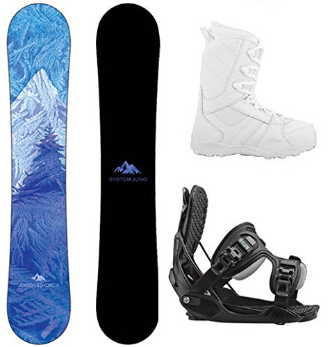 Studio : System Publisher : System Product Description Special System Juno Women's Snowboard Package : An all mountain snowboard package featuring System's newest snowboard, the Juno. The Juno features a CRCX rocker dominate camber profile which allows for easy catch free riding and superior float on those dreamed of powder days. Then we add in the Flow Haylo binding. Featuring their patented rear entry step in design, you'll never have to strap in again. We finish the package off with the Siren Lux snowboard boot. A boot focused on warmth and keeping your feet dry, the Lux is like replacing your boots with a pair of cozy slippers! System Juno Women's Snowboard :The Juno is a masterpiece for female riders looking to really dive in to the sport. Designed to make progression and daily riding more fun, the Juno will have beginners and seasoned veterans alike riding better than ever. The Juno starts with System's CRCX profile which provides the best of every camber story. Centered around a rockered midsection that blends out to mild camber in the tip and tail, the Juno eliminates edge catches while providing maximum edge hold in the iciest conditions. Biax over biax laminates allow the board to easily flex and pop without sacrificing durability. Flow Haylo Snowboard Bindings: Performance, comfort and convenience! With the Haylo, convenience and comfort go hand in hand to create the softest and easiest riding women's binding. Focusing on comfort this molded plastic binding is sure to please. Siren Lux Women's Snowboard Boots : Siren has stepped it up this year with their Lux Snowboard Boots. Designed specifically for the way women ride, Siren thought of everything when they developed this boot. A boot that doesn't sacrifice performance or comfort, the Theory has been turning heads. Additions including a gel patch on the back of the boot to alleviate stress points from highbacks ensure your feet will be living the dream while riding. 0