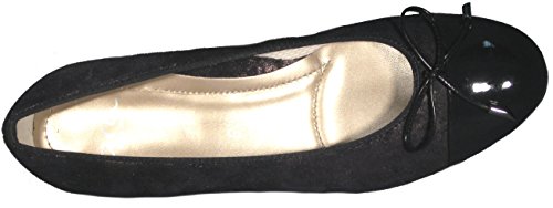 Product Description A dainty bow accents the glossy patent cap toe of a comfortable yet eminently chic flat with a well-cushioned footbed and shock-absorbing rubber sole. 0