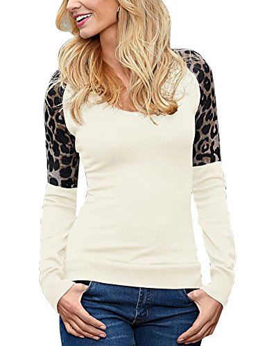 -. Title : FV RELAY Women's Fashion Leopard Patchwork Tee Crew Neck Long Sleeve T Shirt