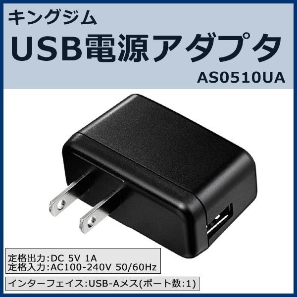 コンセントからキングジムのUSB充電製品に直接給電できるアダプタです。 製造国:中国 商品サイズ:約W55×D24×H51mm 重量:約40g 仕様:定格出力:DC 5V 1A定格入力:AC100-240V 50/60Hzインターフェイス:USB-Aメス(ポート数:1) 付属品:取扱説明書保証書(保証期間1年) ※サプライヤー直送品 ご注文後3~4営業日後の出荷となります【商品名】キングジム USB電源アダプタ AS0510UA