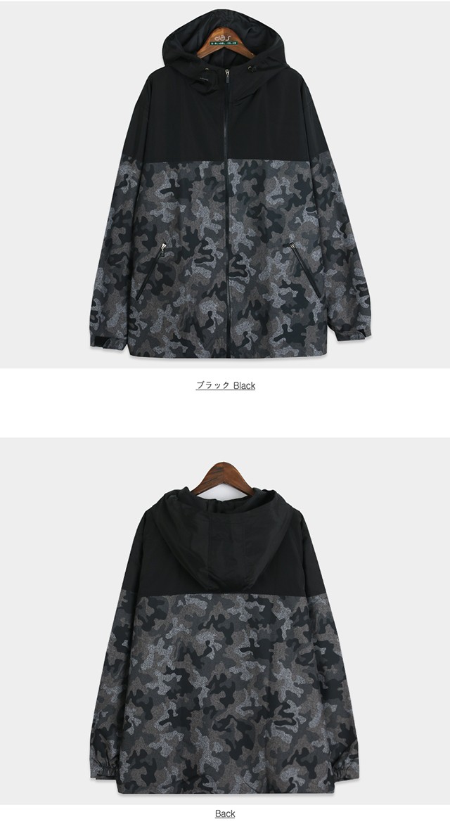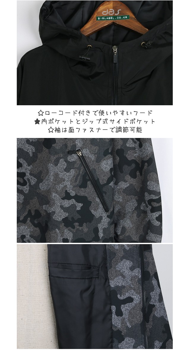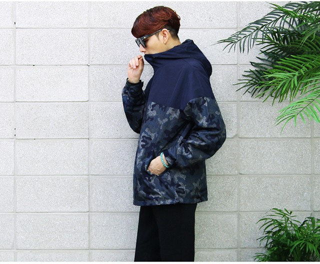切替デザインと迷彩柄が個性的なマウンテンパーカーです。