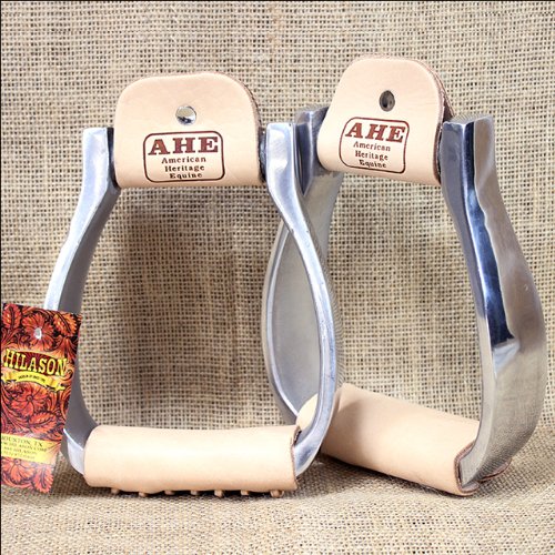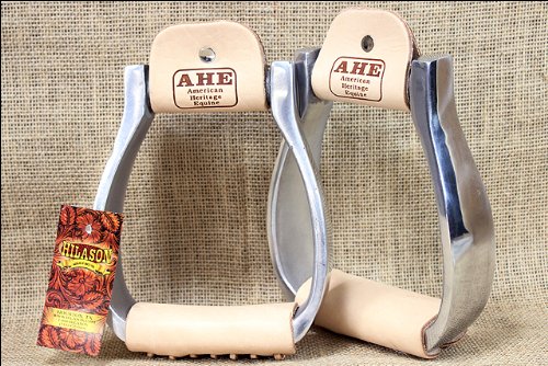 These are thick aluminum Visalia stirrups with 2in. Tread featuring natural skirting leather roller covers with laced-up natural skirting leather treads. These are heavy duty thick aluminum stirrups perfect for everyday riding.