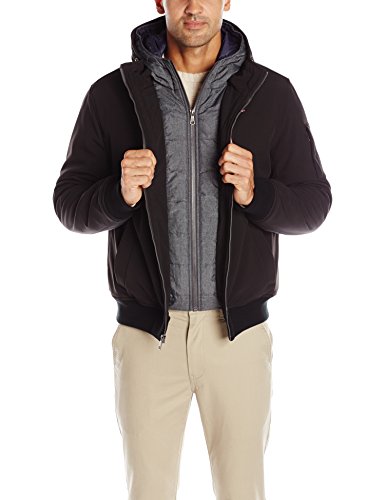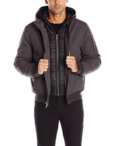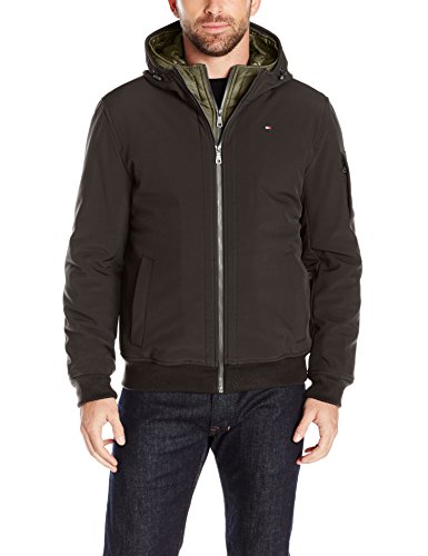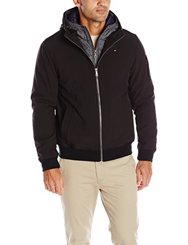 | Tommy Hilfiger Men's Soft Shell Fashion Bomber with Contrast Bib and Hood |