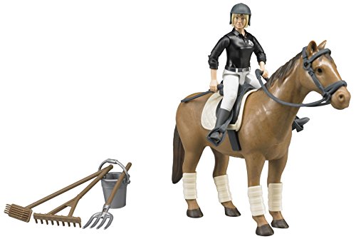 -. Feature : komplettes Spielumfeld mit Pferd und Reiter / mit Sattel, Besen, Rechen, Mistgabel und Eimer / ideale Ergänzung für Reiterhof und Springreiten / originalgetreu im Maßstab 1:16 / hergestellt aus hochwertigen Kunststoff wie z.B. ABS