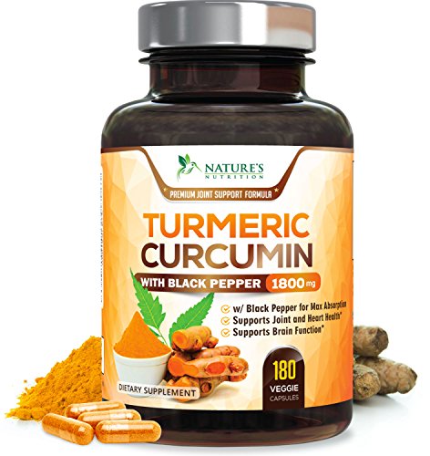 Nature's Nutrition Turmeric Curcumin with Black Pepper Extract, with 95% curcuminoids, contains 1,800mg of turmeric, 150mg of turmeric curcuminoids, and 15mg of black pepper extract, which helps increase absorption and bioavailability by as much as 2,000 times.
