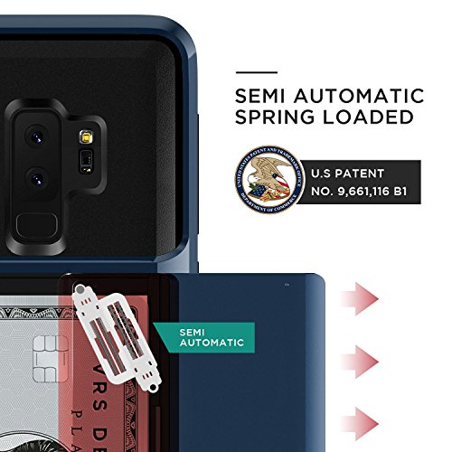 -. Binding : Wireless Phone Accessory -. Brand : V VRS DESIGN -. Color : Deep Sea Blue -. EAN : 0818326027348 -. Feature : REINFORCED GRIP | Ergonomic bumpers provide a reinforced grip to secure your phone while maintaining a modern look / WALLET CASE | SP.R.Ing-loaded sliding compartment makes holding and using up to two cards simple / LAYERED PROTECTION | Flexible TPU body and shockproof PC bumpers double defenses against impact / POCKET-FRIENDLY | Dual-layer cover is designed with smooth, soft, and rounded edges / WIRELESS CHARGING | Compatible with most wireless chargers and other third-party accessories -. Label : V VRS DESIGN -. Manufacturer : V VRS DESIGN -. MPN : 43220-38747 -. PackageQuantity : 1 -. PartNumber : 43220-38747 -. ProductGroup : Wireless -. ProductTypeName : WIRELESS_ACCESSORY -. Publisher : V VRS DESIGN -. Studio : V VRS DESIGN -. Title : Galaxy S9 Plus Case :: VRS :: Slim Fit Card Slot Holder :: Semi-auto Sliding :: Heavy Duty Drop Protective Cover for Samsung Galaxy S9 Plus (Damda Glide - Deep Sea Blue) -. UPC : 818326027348