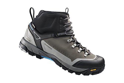Studio : Shimano Publisher : Shimano Product Description The Shimano Explorer XM9 Adventure Boots are multi-season, all conditions footwear that are ruggedly crafted for on or off-the-bike outdoor adventures. If you're headed deep into the wilderness then these shoes are truly a must-have item for your feet. The XM9 Adventure Shoes feature a breathable, waterproof Gore-Tex membrane that ensures your feet stay dry in testing conditions. There's a natural nubuck leather upper with a reinforced rubber toe box for protection and durability while the mid-top design ensures stability, ankle protection, and walking support. The shoes are 2-bolt cleat compatible and feature a sole optimized for both pedaling and walking courtesy of a flexible, half-length shank plate and a Vibram outsole. Traditional laces coupled with Shimano's Mini Power Strap ensure a snug, precision fit while ankle padding prevents dirt and debris from entering the shoe's upper for the ultimate in comfort. Breathable, waterproof Gore-Tex membrane keeps your feet dry Natural Nubuck leather upper ensures durability and breathability Reinforced rubber toe box provide protection and durability Strategic ankle padding prevents debris from entering the shoe and interfering with pedaling action Vibram outsole ensures superior grip and control in all conditions Laces plus Mini Power Strap closure system ensure a precision fit Flexible half-length shank plate and shock absorbing EVA deliver trail walkability as well as pedaling performance Mid-top design offers added stability, ankle protection, and walking support 2-bolt cleat compatible Weight: 1,200 grams/pair 0