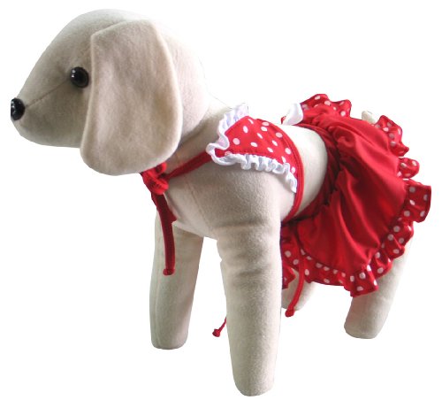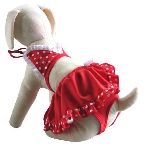UP Collection Polka Dot Dog Skirt Bikini, XX-Small, Red and White