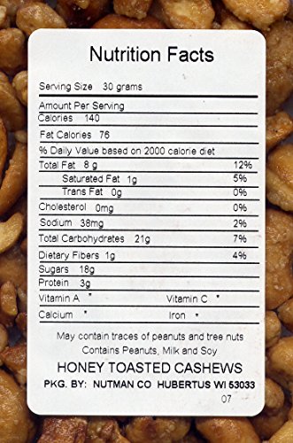 [Product Information]- These Honey Toasted Cashews have a Rich Full Cashew Crunch and Flavor. They are great.