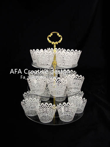 3 layers [trumpet] Model JS-30S [disk diameter: 15cm +18.7cm +22.5cm] layer height 10cm / total height 28cm / bracket gold / 62 yuan