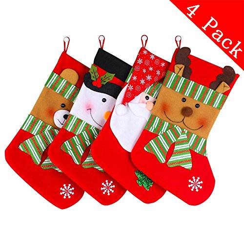 Christmas Stockings Decoration - 4 Pcs Set (Snowman Elk Bear Santa Claus) Party Fireplace Toys Stockings Decor (15 Inch)