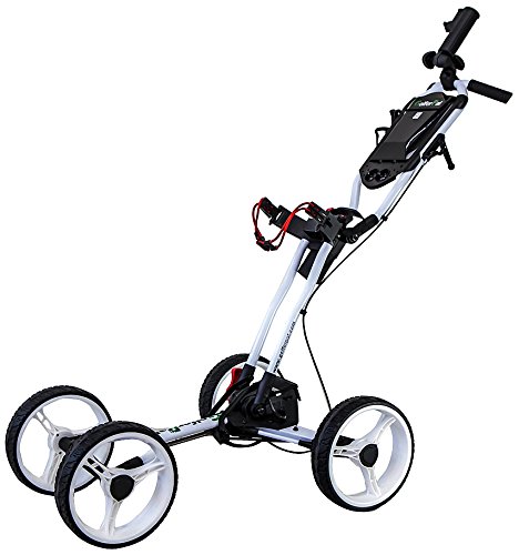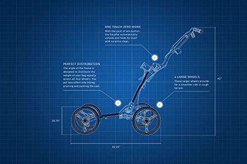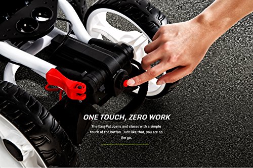 The EasyPal is the world's first auto-folding/unfolding golf push cart. With just one touch, the EasyPal will fold/unfold in a few seconds by itself, no hassle. Using innovative technology, the EasyPal is designed to perfectly distribute the weight of your bag across the cart. You put less effort into tilting and pivoting the cart. Our four large wheels provide a smoother ride on rough terrain. The EasyPal's battery will last for up to 6 months of regular play. With all of these features packed in, the EasyPal still folds down to one of the most compact and lightweight models.Feature