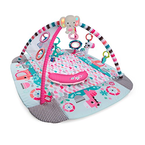 • So many engaging playtime toys including bead chaser, plush musical elephant, baby-safe mirror, crinkle fabrics and more