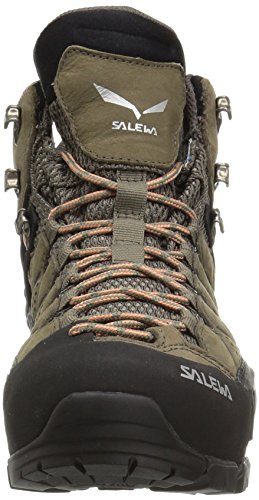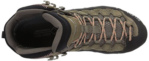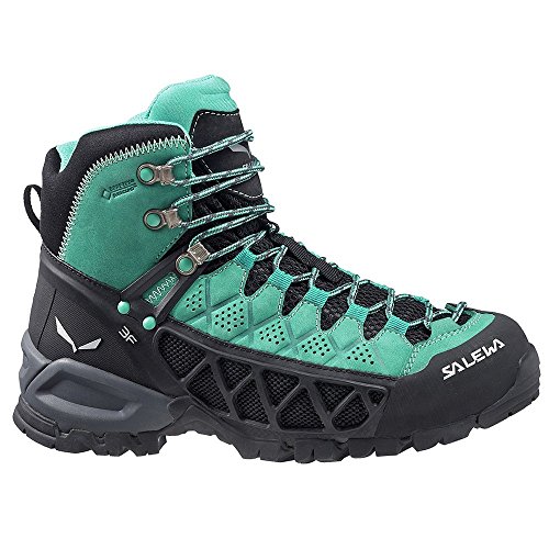 Studio : Salewa Publisher : Salewa Binding : Apparel Product Description The Salewa Women's Alp Flow Mid GTX Hiking Boot boasts the most innovative features found in boots. Gore-Tex's Surround midsole offers waterproofing superior to the competition, with a laminate that wraps around the entire boot. Unlike most waterproof boots, Gore-Tex Surround includes a specially-perforated footbed to provide true breathability underfoot, resulting in an entirely comfortable hike whether you're trekking in hot, muggy weather or cold, wet weather. Salewa paired Gore-Tex's Surround with Gore-Tex's Extended Comfort for even more waterproof breathable protection. The Alp Flow also features Salewa's 3F System Evo for a surprising amount of flexibility and mobility in a supportive mid-cuff boot. Ballistic mesh makes the upper very breathable and durable, and Salewa added nubuck leather reinforcements and a 360-degree rubber rand for rock protection. Climbing-style laces give a snug fit from toe to foot. Vibram's Hike Apparoach sole gives the grip, flex, and durability that's ideal for the most demanding excursions. 0