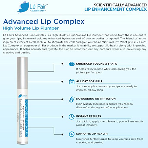 -. Feature : LE FAIR ADVANCED LIP FORMULA visibly enhances your lips! Enjoy the sexy, voluptuous lips you have always dreamed about without costly and painful collagen injections! / THE NATURAL BLEND OF HIGH QUALITY INGREDIENTS provides a safe and effective way for you to plump up and glamourize your lips, while at the same time moisturizes and improves your sensitive skin. / NON-GREASY, QUICK ABSORBING FORMULA that goes on smoothly and won't irritate sensitive skin! Say no to thin, dry, lips and yes to Le Fair! / WHY WASTE MONEY ON INJECTIONS AND COLLAGEN THAT ARE COSTLY AND CAN WRECK YOUR LIPS? With Le Fair Advanced Lip Plumper you can turn your thin lips into fuller, plumper, healthier knockouts that everyone will be gushing over! / This Product Does Occasionally Become Back-Ordered. Order Your Supply of Le Fair Advanced Lip Complex Today! + BONUS: FOR A LIMITED TIME YOU WILL RECEIVE A FREE EXCLUSIVE "FOUNTAIN OF YOUTH" E-BOOK AND COUPON CODES FOR YOUR NEXT AMAZON ORDER!