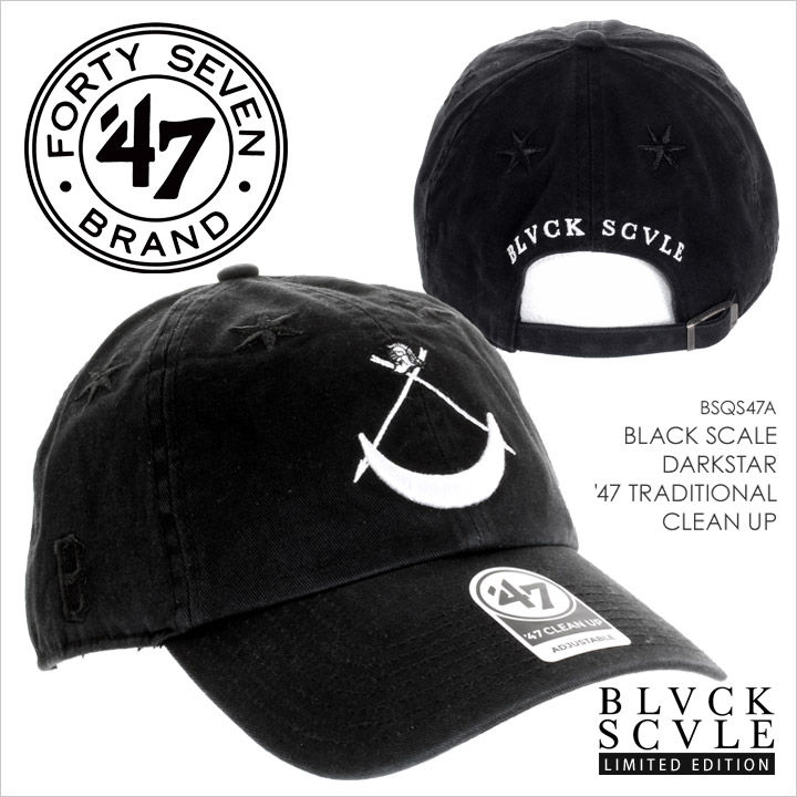 ストリートファッション好きから絶大な人気を誇るブランド"BLACK SCALE / ブラックスケール"と47BRANDの豪華コラボキャップ。 定番ロゴをダイナミックなサイズでフロントに配し、6パネルのトップにブラックの刺繍でスターが施されたファン垂涎のデザイン。 ボディーは47ブランドでも人気の高い浅めシルエット、カーブバイザーが特徴の"CLEAN UP"を使用。 気軽に水洗いも可能で自分だけのキャップに仕立てることもでき、経年変化もじっくり楽しめるキャップ玄人にもオススメのアイテムです。数量限定での貴重な限定キャップなので、お早めのチェックをオススメします!!