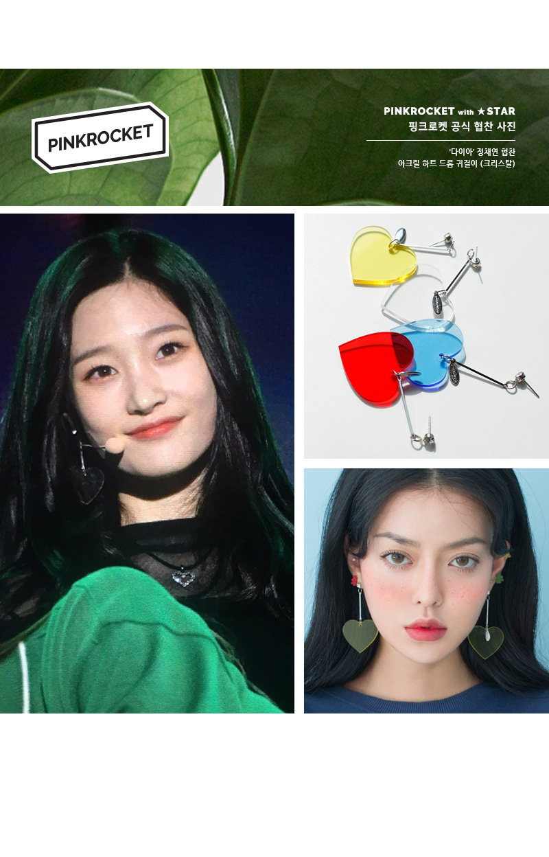 트와이스의 지효는 '아크릴 하트 드롭 귀걸이'(레드)를 착용했어요 : )