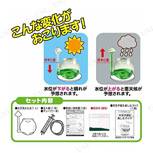 Studio : Nor Corporation Publisher : Nor Corporation Binding : Toy Product Description [Product specifications]< br > product size: package:W142xD107xH164mm / sphere diameter: approx. 7 cm < br > material: glass < br > set includes:-one change the weather / injection tube 1 /-about [the frog weather reporter color (colored powder)]>< br > with guide <-br instruction manual sheet / / green powder and weather to enjoy < br > Please pay attention to the part you turn by hand a thin tube. Frog weather reporter is protected according to pressure changes in the water level in the tube up or down it is. Falling water at high pressure is likely can expect "fine", when a low pressure water level can rise, weather will get worse. This mechanism allows to predict the weather after a few hours. < Br >< br > [item keywords: weather forecast free study Interior together buy a large amount of buying nor Corporation 0