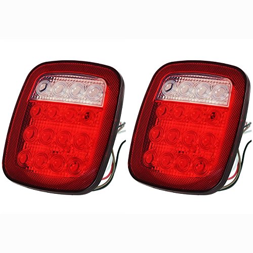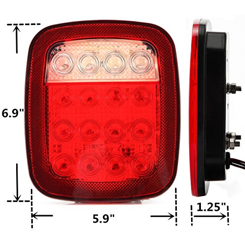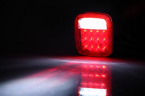- Pack of 2 lamps, Each lamp equiped with 16pcs square LEDs inside,including 12 Red LEDs (Stop,Turn & Tail) & 4 White LEDs (Back-up/Reverse).
