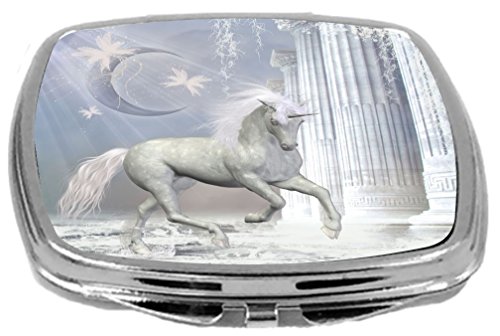 Rikki Knight Compact Mirror, Magical White Unicorn Fantasy on Pink Bridge, 3 Ounce