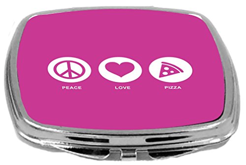 Rikki Knight Peace Love Pizza Design Compact Mirror, Rose Pink, 2 Ounce