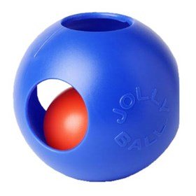 -. Title : Jolly Ball Teaser Dog Toy - Unique ball within a ball rolls erratically and can hold any dog's attention (Available in two sizes 6" & 10".)