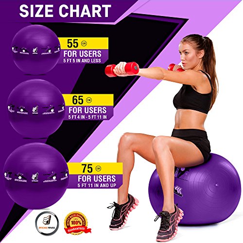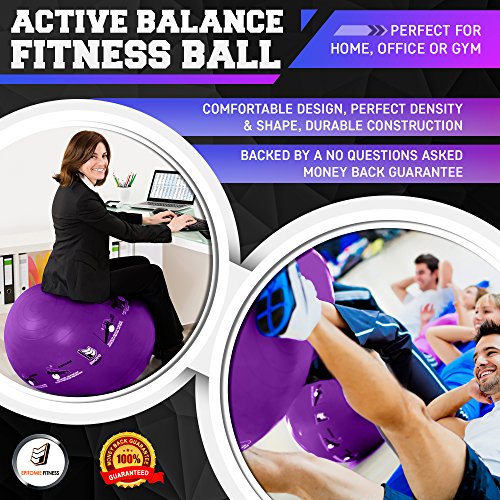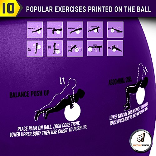 Epitomie Fitness Active Balance Fitness Ball with Imprinted Exercise and Training eBook (Purple/65 cm)