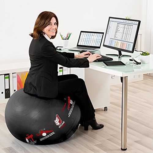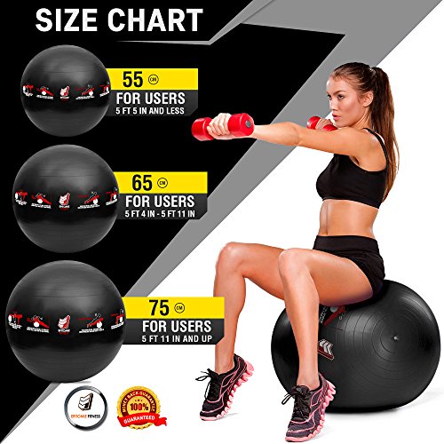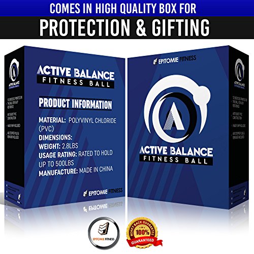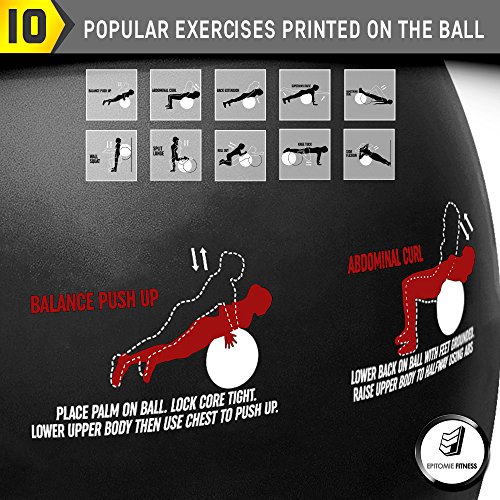 Epitomie Fitness Active Balance Fitness Ball with Imprinted Exercise and Training eBook (Black/65 cm)