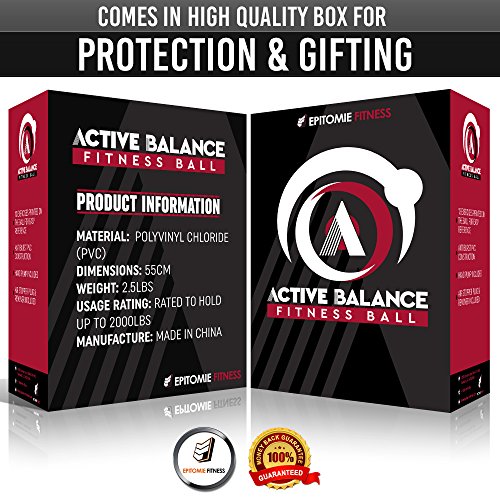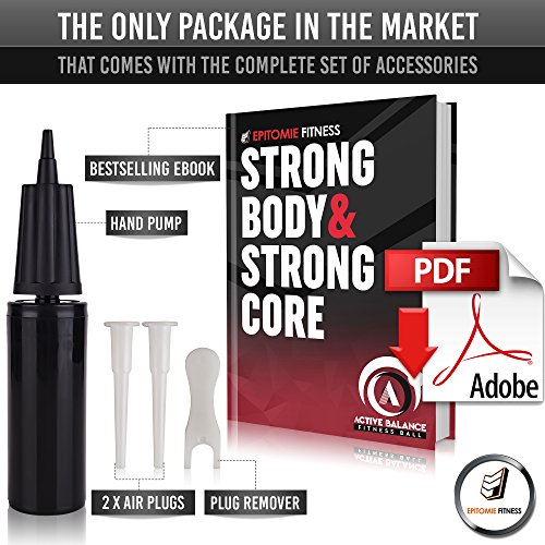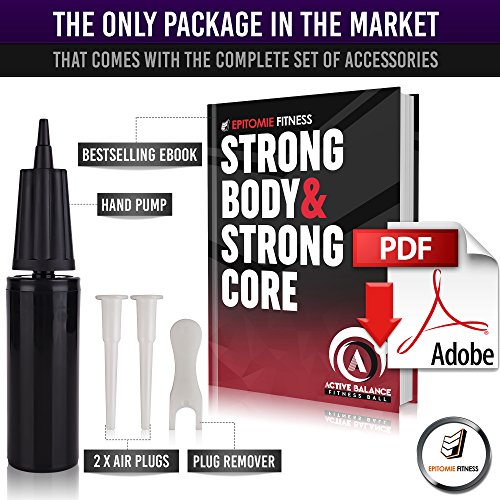 Epitomie Fitness Active Balance Fitness Ball with Imprinted Exercise and Training eBook (Black/55 cm)