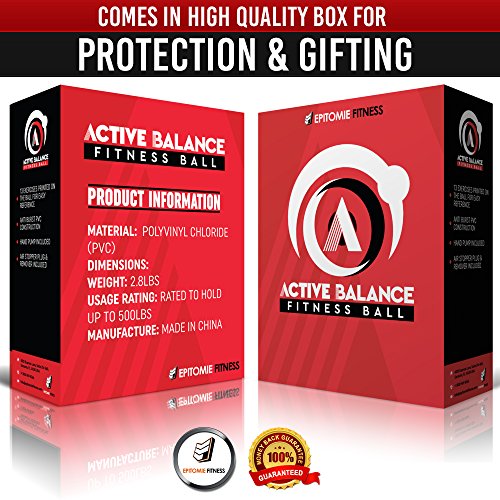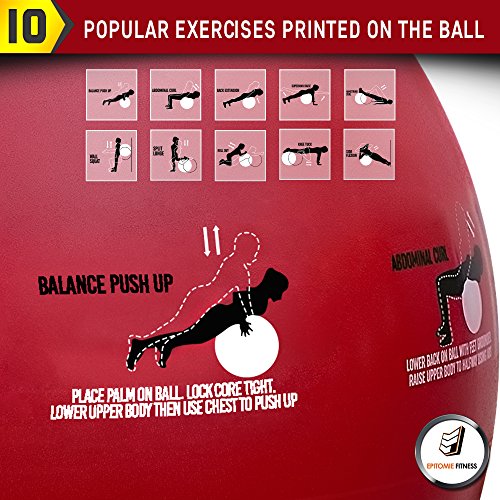 Epitomie Fitness Active Balance Fitness Ball with Imprinted Exercise and Training eBook (Fire Red/65 cm)