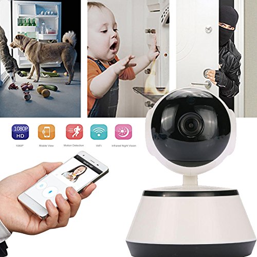 -. Feature : 【REMOTE CONTROL】: With the security camera, you can view your babies, parents, pets, shop, home, office via phone/ipad/PC anytime, anywhere. / 【MOTION DETECTION & ALARM PUSH & RECORDING】: Automatically detect moving objects and alarm push to your smart phone via E-mail, App and FTP. Support Micro SD card (Built-in Micro SD Slot, Max 64 GB supported, SD card is not included) for recording, storing and reviewing. / 【PERFECT NIGHT VISION】: With IR-CUT Auto Switch Filter, this security camera will auto switch to night vision when it's dark. Night visibility 32 feet, you can see the video as clear as daytime! / 【BROAD FIELD OF VIEW】: PTZ control Horizontal 355° & Vertical 100° covers every corner of your home to ensure the safety of the whole family / 【TWO WAY TALKING】: The Surveillance security camera built-in two-way talking with 3D Digital Noise Reduction, providing high quality auditory sense and talking effect. Never let go off any thief, never miss any important moment with you family.