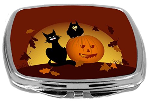 Rikki Knight Compact Mirror, Halloween Pumpkin and Black Cat, 3 Ounce