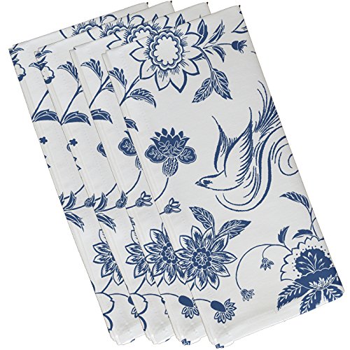 E by design Traditional Bird Floral, Floral Print Napkin, 19 x 19", Blue