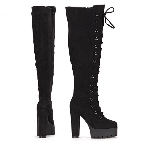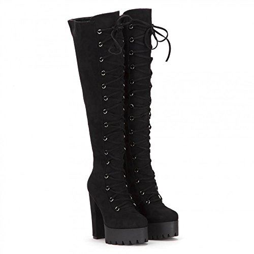 Studio : Onlineshoe Publisher : Onlineshoe Binding : Apparel Product Description Add Attitude To Your Winter Wardrobe With These Sexy Tall Boots Featuring Full Lace-up Design.? The Cleated Sole Platform Teamed With Chunky High 5 inch Block Heel Allow These Boots To Be The Star of The Show. Full Length Zip For Easy On/Odd.? Choose From Black Finished in Faux Suede. 0