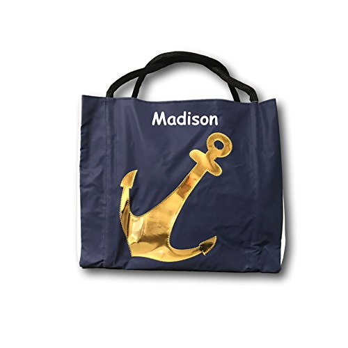 Product Description Personalize this Gold Anchor Tote with the name of your choice. Large Anchor Tote measure approximately 15 inches tall x 18 inches wide x 5 inches deep. Classic Nautical Design is attractive and made from sturdy 100% PVC material. Note: Items that are customized specifically for the customer (such as monograms, names, embroidery, etc.) are not eligible for a return. Please refer to the "Handmade at Amazon" section of the Amazon Return Policy for more info. 0