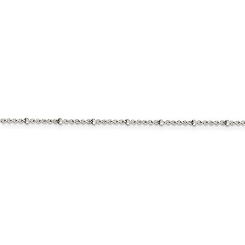 Solid 925 Sterling Silver 1.25mm Rolo with Beads Anklet 10"