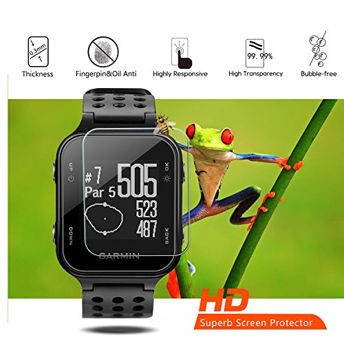 -. Feature : Designed for Garmin Approach S20. Precise laser cut designed specifically to offer max body coverage. / Greatest protection: Extremely high hardness,resists scratches up to 9H Tempered Glass with long lasting protection. / 99.99% HD Clarity and Touchscreen Accuracy: High-response, high-transparency. / Super easily installation: Allows adjustments during installation.Significantly reduces dust, oil and fingerP.R.Int smudges. / 1 Retail package includes: 4pcs tempered glass screen protector for Garmin Approach S20, 4 wet and dry Screen Cleaning Paper,4 Sticker.