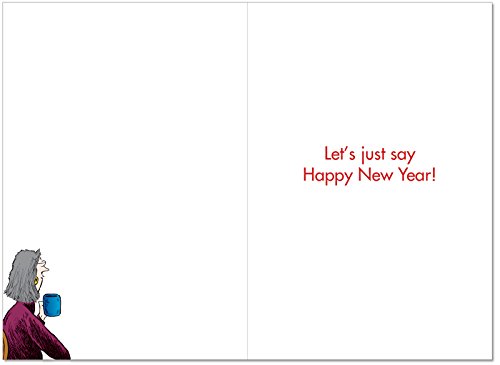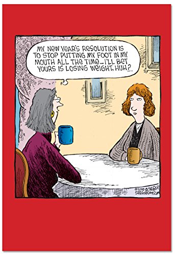 B2530NYG Box Set of 12 Foot In Mouth Unique Hilarious New Year Greeting Cards with Envelopes