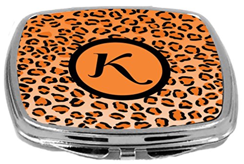 Rikki Knight Compact Mirror, Letter k Initial Orange Leopard Print