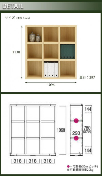 | 仕様 | 完成品 可動棚板:6枚 可動棚板耐荷重:20kg(1枚あたり) |
