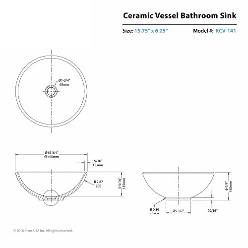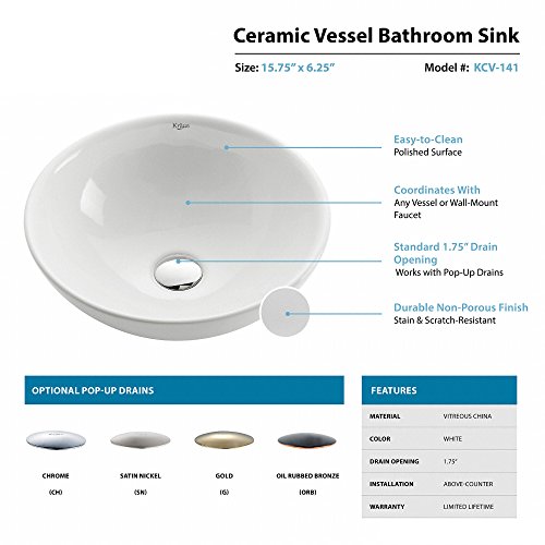 Kraus KCV-141 White Round Ceramic Bathroom Sink