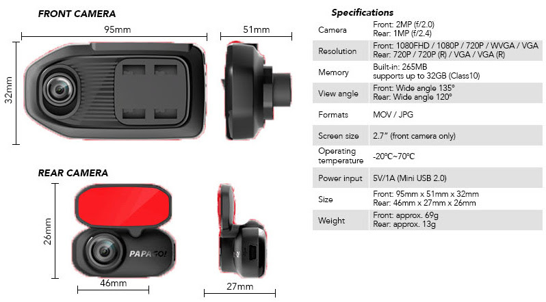 Papago! GoSafe 360 Dual Car Camera FHD 1080
