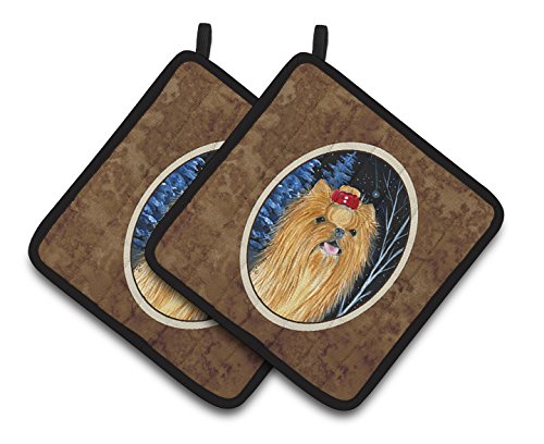 Caroline's Treasures Starry Night Yorkie Pair of Pot Holders SS8413PTHD, 7.5HX7.5W, Multicolor