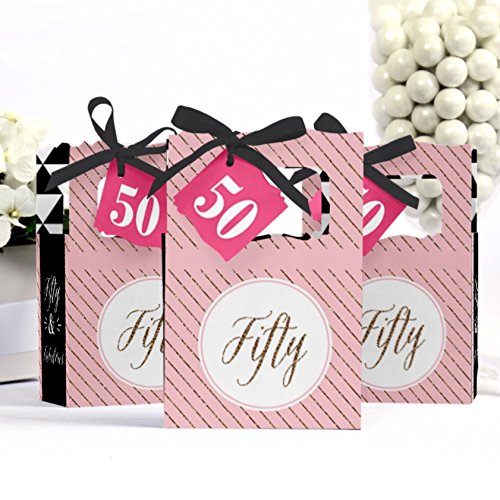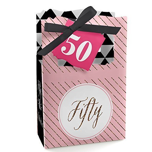 Chic 50th Birthday - Pink, Black and Gold - Birthday Party Favor Boxes - Set of 12