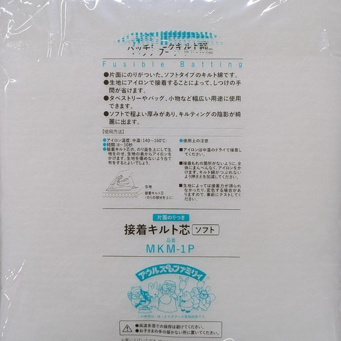 しつけの手間がいらず、ラクにキルティングできます。 製造国:日本 素材・材質:ポリエステル100%接着樹脂:ポリアミド 重量:120g/m2 仕様:ソフトタイプ ※サプライヤー直送品 ご注文後3~4営業日後の出荷となります【商品名】バイリーン パッチワークキルト綿 片面のりつき 接着キルト芯 (ソフト) 100×100cm MKM-1P
